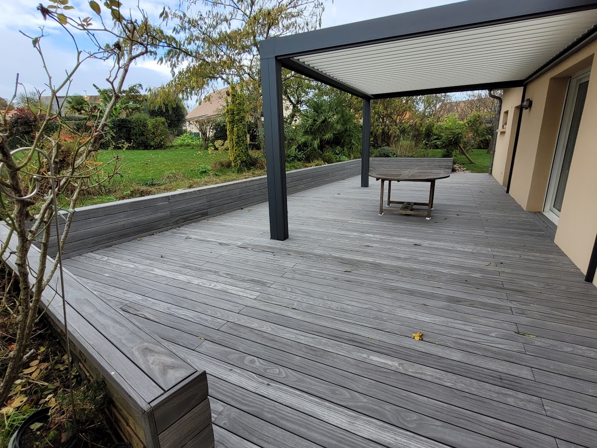 Avec le temps, toutes les terrasses en bois finissent par changer de couleur. Sous l’effet des UV, de l’humidité et des intempéries, le bois se patine et devient gris.